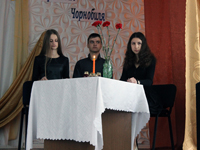 Пам’ять – це данина живих усім, хто загинув, рятуючи інших і нехай ніколи не замовкають дзвони людської пам’яті, що не даватимуть забути про Чорнобильську трагедію. 26 квітня у день 30-ї річниці аварії на Чорнобильській АЕС, яка принесла Україні гірку, як полин, славу, учні 9-Б класу (кл.керівник Тарасюк Л.В.) підготували та провели для учнів 8-9 класів соціологічне дослідження «Біль планети – трагедія Чорнобиля». Учні ознайомились з історією трагедії, яка трапилась на Чорнобильській атомній станції. Хвилиною мовчання вшанували всіх, хто згорів у реакторі, хто помер від великої дози опромінення, рятуючи світ від радіаційної чуми. Емоційно вразив присутніх фільм, який відобразив аварію на ЧАЕС та її наслідки.