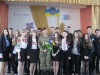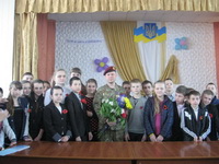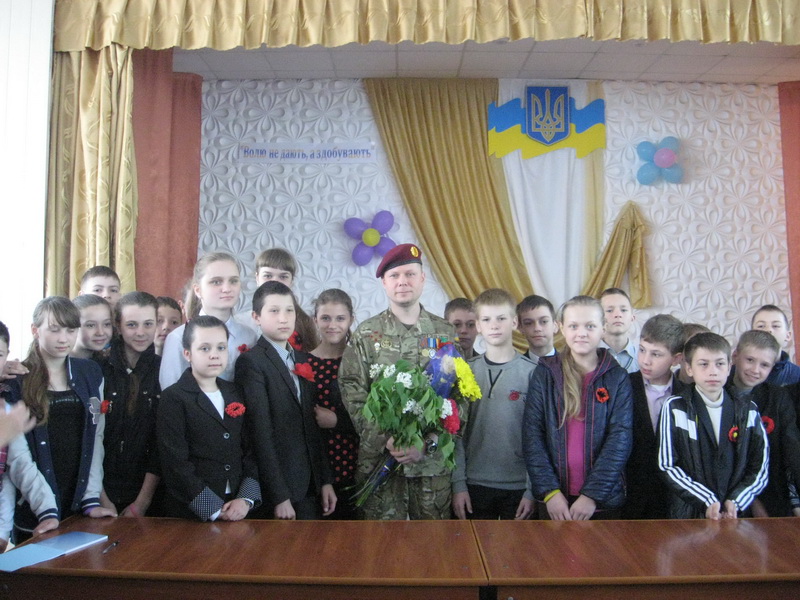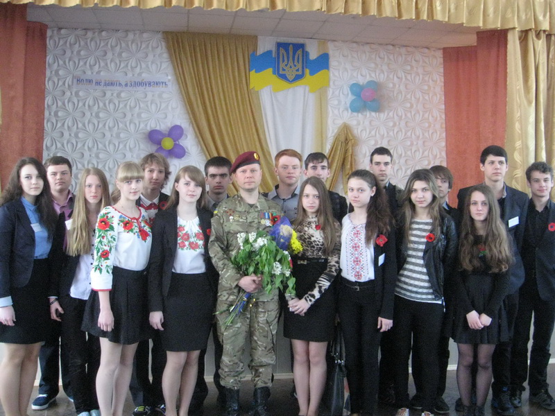 Ростислав Ростиславович розповів про свої фронтові будні, про те, як хлопцям потрібно загартовувати себе, як важливо вести здоровий спосіб життя, щоб стати справжнім захисником своєї Вітчизни. А кадри документального фільму, якими супроводжувалася розповідь, ще раз засвідчили, що усім нам треба консолідуватися, стати єдиним народом, пам’ятати сторінки історії, бо пам’таючи минуле переможе народ, переможе Україна.