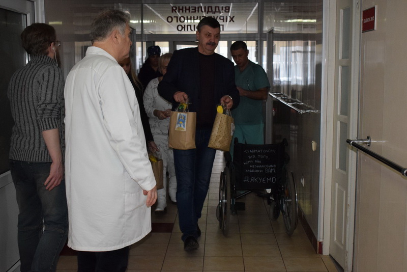 Вже неодноразово члени колективу нашого ліцею відвідують поранених військових, які проходять курс лікування у Центральній міській лікарні. 12 січня адміністрація ліцею та голова батьківського комітету черговий раз приїхали привітати зі святами наших воїнів, передали слова подяки від вчителів, учнів та батьків та подарували подарунки. У кожен дбайливо прикрашений пакунок діти вклали власноруч зроблені зимові сувеніри – патріотичні сніговими миру, в’язані шкарпетки та різні смаколики. Та найцінніше це – частинка тепла, яку діти передали військовим.