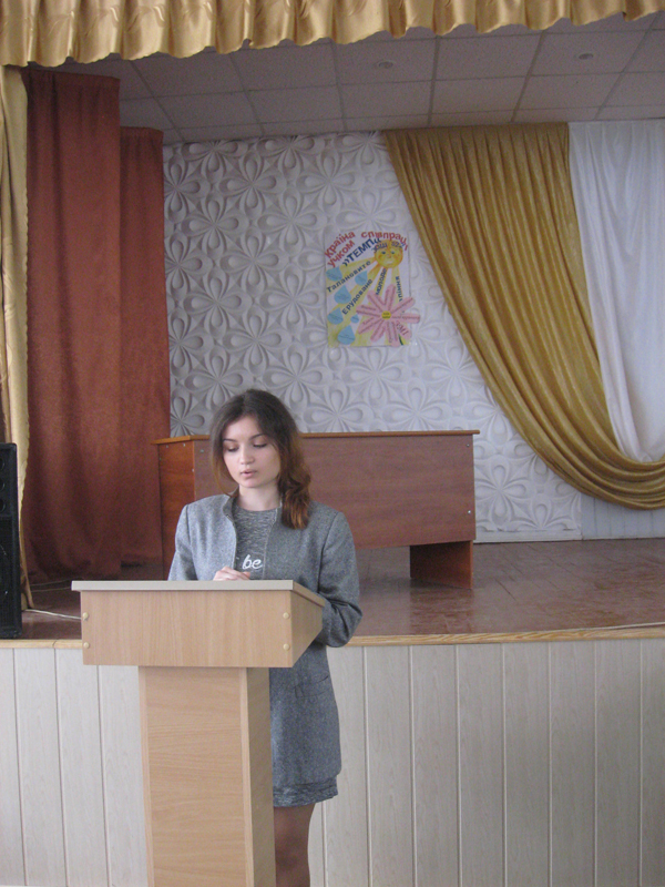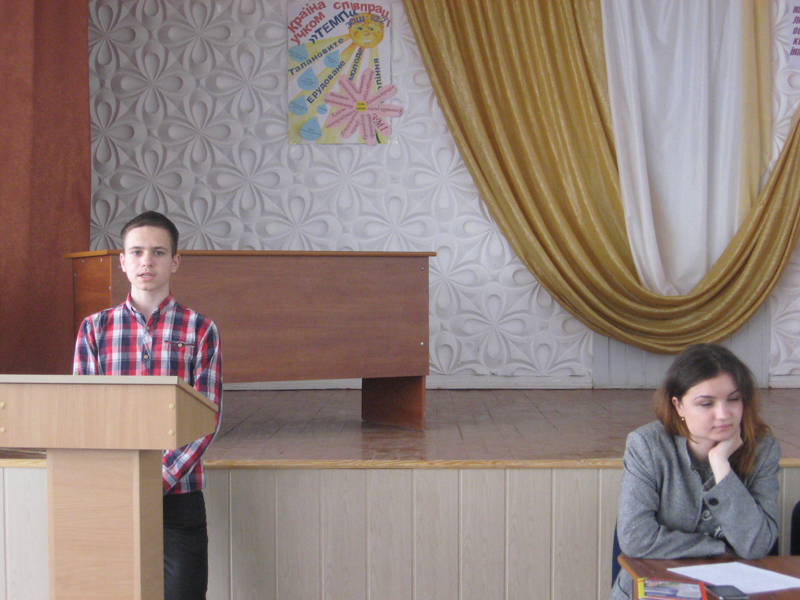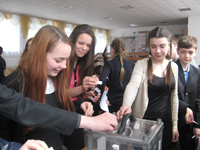 На посаду голови учкому було чотири кандидатури: Садовчук Олена – учениця 9-Б класу, Демчук Анна — учениця 8-Б класу, Ступницький Василь – учень 9-А класу та Лавор Анна – учениця 10-Б класу. Протягом тижня учні школи мали можливість ознайомитись з програмою наших кандидатів.