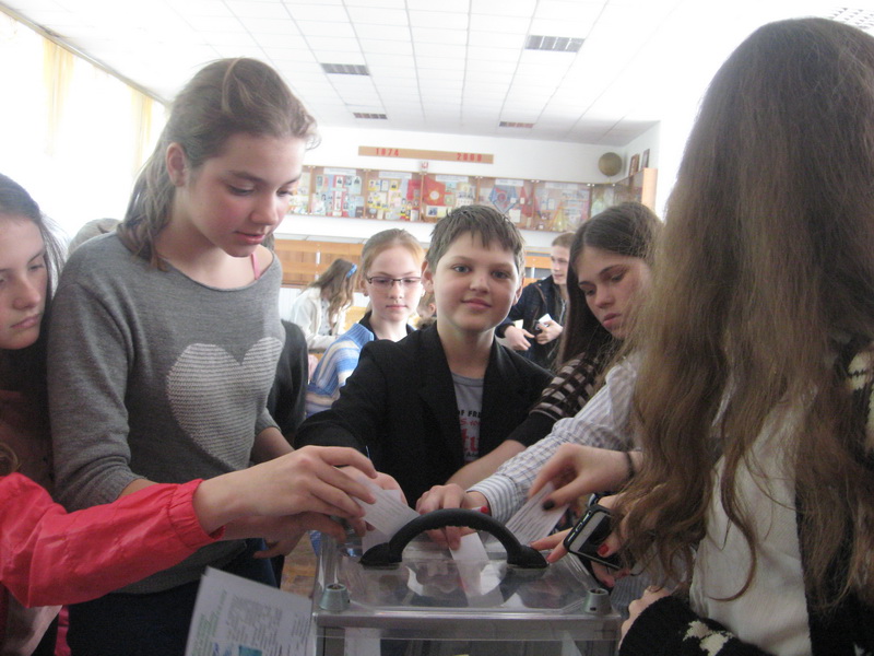 На посаду голови учкому було висунуто чотири кандидатури: Дорощук Анна — учениця 9-Б класу, Жук Сніжана – учениця 8-А класу, Жеребчук Марія – учениця 7-А класу та Вертелецька Олександра – учениця 9-Б класу. Протягом місяця учні школи мали можливість ознайомитись з програмами кандидатів.