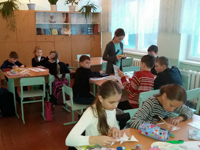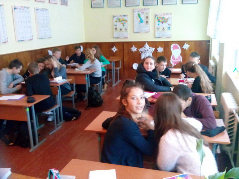 У 5-В класі було проведено коллаж новорічних прикрас, а 5-А клас виготовляв вітальні новорічні листівки.