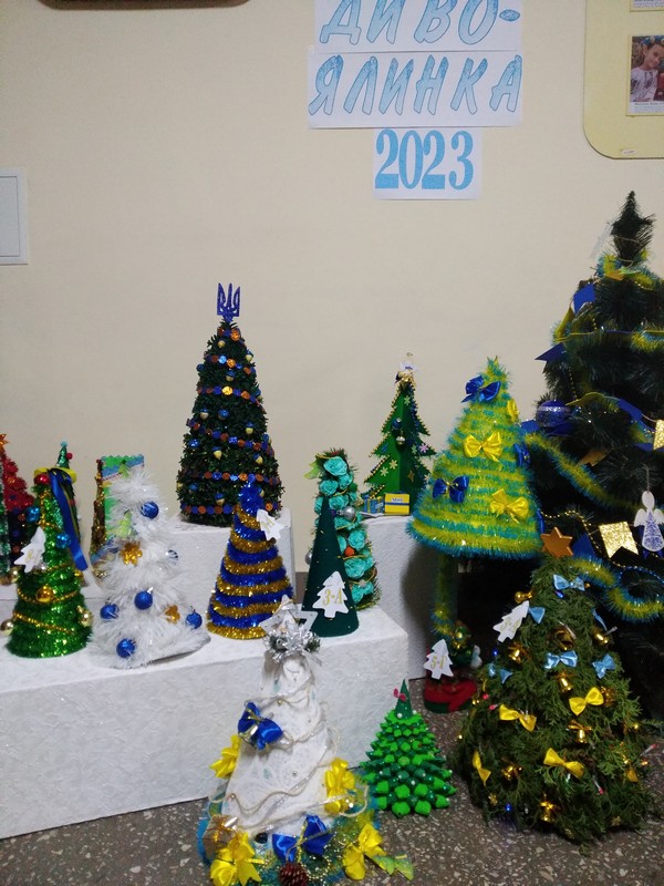 З метою популяризації, підтримки та розвитку українського; бережливого ставлення до природи; розвитку фантазії, навичок виготовлення виробів своїми руками та створення святкового декору без шкоди для довкілля у Рівненському ліцеї №22 відбулася виставка-конкурс власноруч вироблених патріотичних ялинок «Диво-ялинка-2023».
