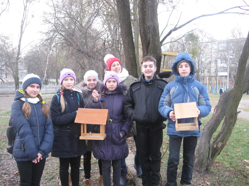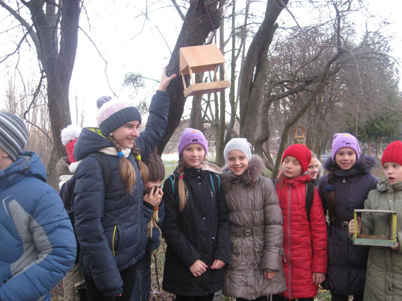 Годівнички, які залишились були розвішені гуртківцями навколо школи. Цією акцією ми хотіли привернути увагу всіх учнів школи до охорони наших пернатих друзів та до необхідності зимової підгодівлі птахів, які залишаються зимувати у нашому місті.