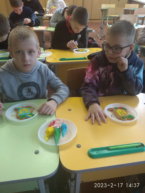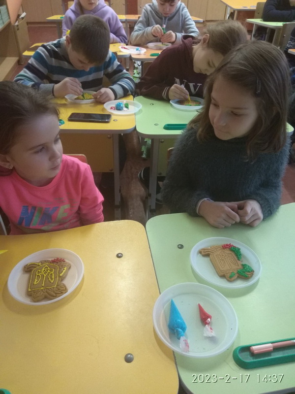 23 лютого учні 3-В класу (класний керівник Свідерська О.С.) мали можливість відчути себе справжніми кондитерами і спробували малювати солодкими фарбами. Напередодні Дня Державного герба України вони взяли участь у майстер-класі з розписування імбирного печива у формі тризуба. Секретами майстерності з нашими ліцеїстами поділилася майстриня Світлана Руденко. Юних художників захопив творчий процес, тому результат перевершив очікування.
