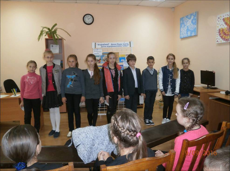 19 вересня Центральна дитяча бібліотека запросила учнів 6-А класу ЗОШ № 22 на літературний часопис «Прийди до серця, Україно…». Діти пізнавали Україну, її історію. Окрема сторінка часопису була присвячена українським лицарям ХХІ століття – учасникам АТО, що сьогодні боронять нашу землю, відстоюють незалежність та цілісність держави.
