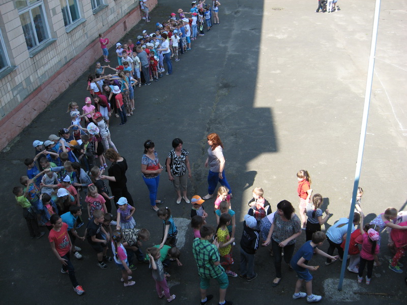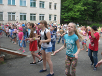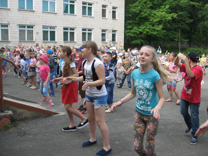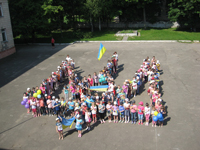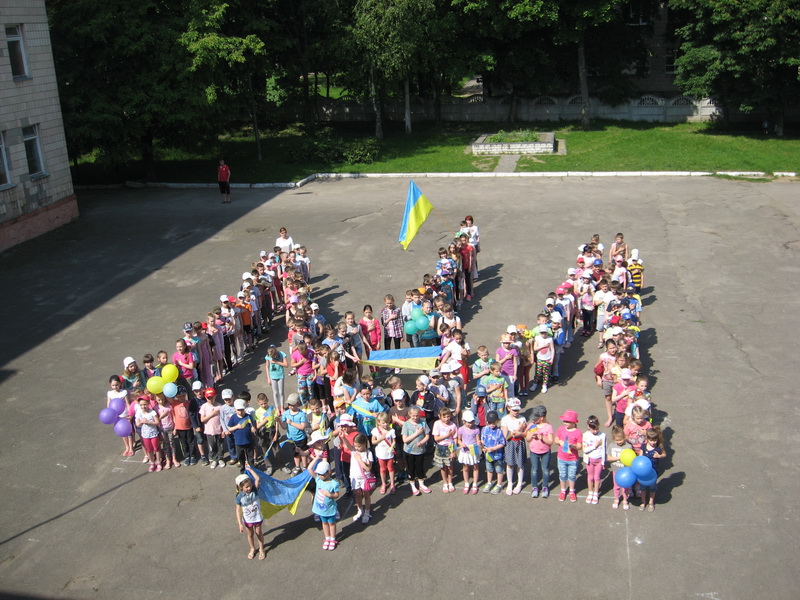 «Перший день в таборі “День друзів” — надзвичайно захопливий! Сьогодні відбулося багато цікавих подій: весела зарядка, міні-концерт “Співаймо разом”, конкурс малюнку на асфальті “Я голосую за мир!”, гра “Великий ручай”. Та головним дійством цього дня став флеш-моб “Юні патріоти”, в якому кожен учасник відчув себе частинкою Великого символу, скандуючи: