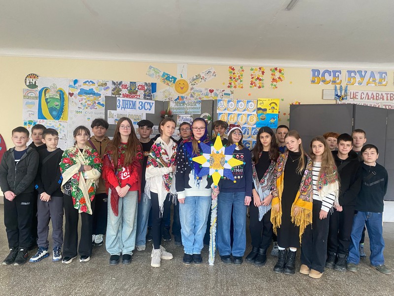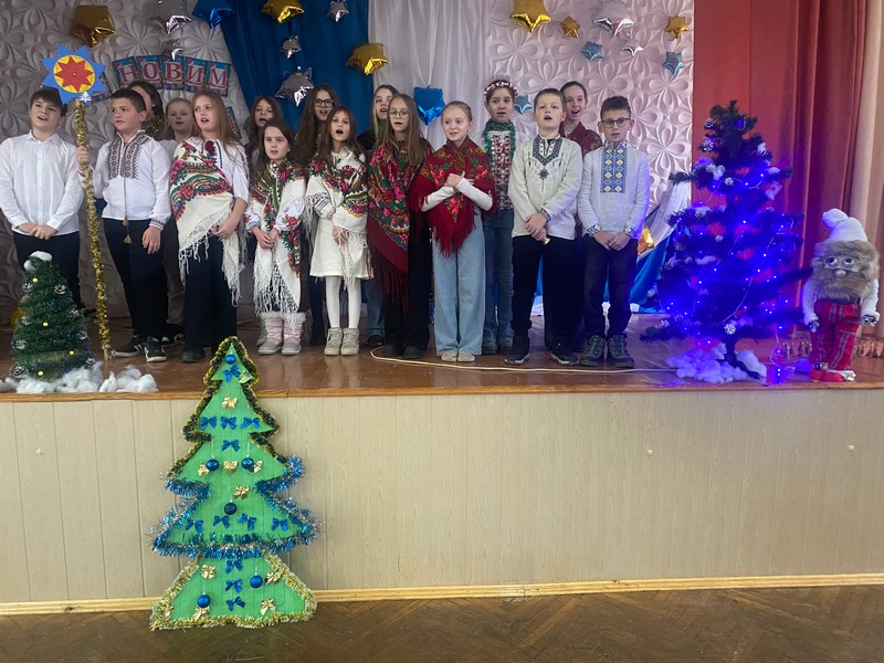 Рухаємося далі коридором ліцею учні 9 — А класу (Муха О.О) дуже давню колядку чудесно виконують, а тут випускники 11 — А класу (Кисільов І.С) прекрасними голосами душу звеселяють. А в актовій залі вже 11 – Б клас — загін «Волонтер» свої вітання ЗСУ відправляють.
