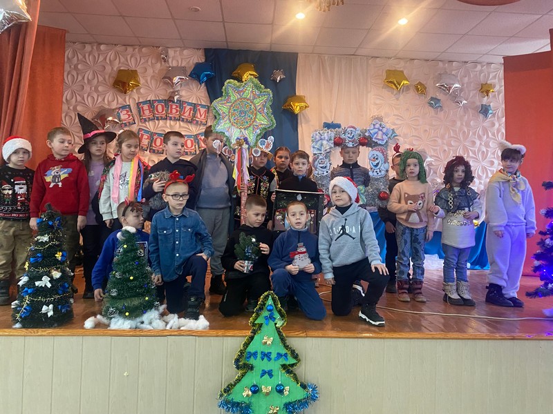 Ось у підвалі учні 5-Г класу (Білощук Л.П.) роблять виставу про лист на фронт і колядку співають.