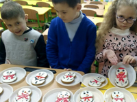 16 грудня у 1-Б класі ЗОШ№22 відбувся цікавий майстер — клас з розмальовування імбирних пряників, який провела мама учня Руденка Дениса пані Світлана. Усі працювали натхненно і зосереджено, і як результат – вийшли неперевершені, яскраві, запашні прянички-сніговички, розписані з любов’ю. Учні повернулися додому із чудовими солодкими сувенірами та гарним настроєм на усі новорічно-різдвяні свята.