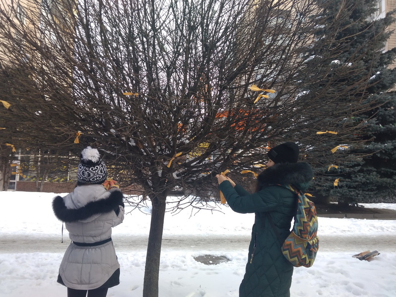 15 лютого – Весвітній день онкохворих дітей. Символом цього дня є золота стрічка. Шоб привернути увагу громадськості до цієї проблеми, учні рівненських шкіл в центрі міста урочисто вбрали 23 клени в золоті стрічки, які стали символом солідарності та підтримки хворих дітей. Голова учнівського комітету ЗОШ№22 Жеребчук Марія та Онищук Ганна теж долучилися до акції. А вперше подібна акція відбулася у 2001 році в Люксембурзі.