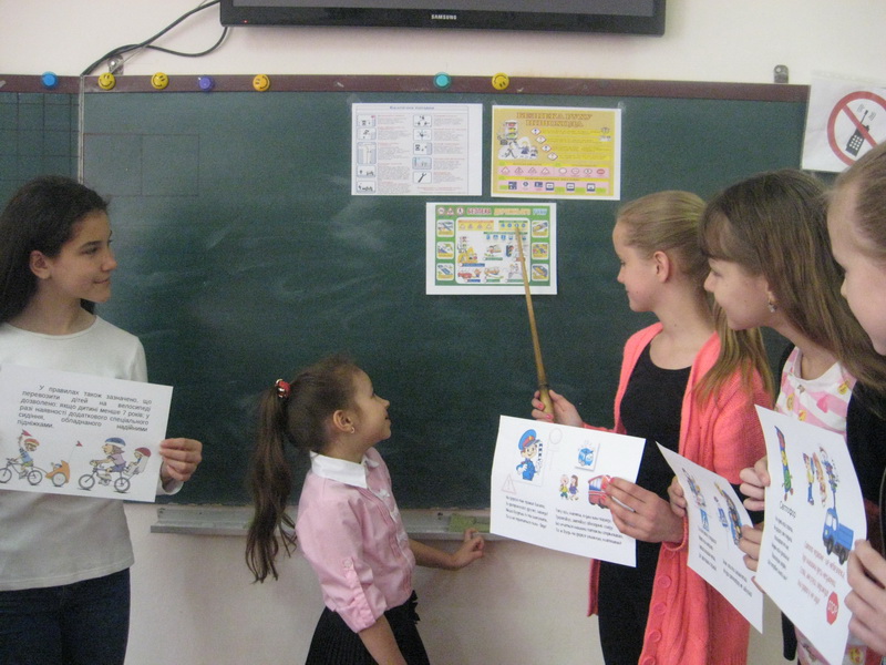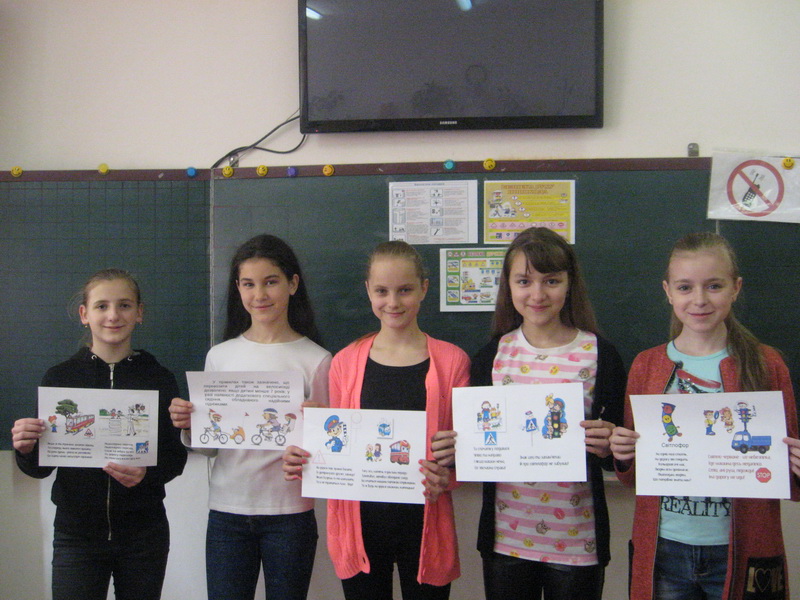 Учителі основ здоров’я Петрова О.В., Устимчук О.В. Оноприч М.М. з п’ятикласниками провели інтерактивну вікторину «Найкращий знавець правил дорожнього руху», а Мельничук Т.Л., Сліпченко О.В., Доманська Т.П. – педагоги-тренери підготували і провели тренінг «Твій безпечний шлях до школи».