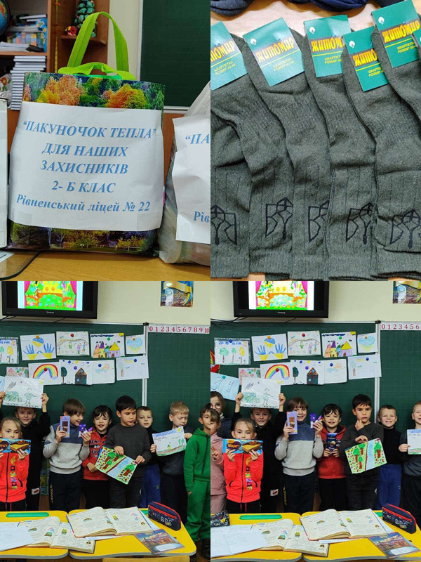 В рамках акції «Тепла коробочка» учні 2-Б, 2-В, 2-Г класів формували і свої пакуночки з необхідними речами для захисників військової частини А0536, 1 мотопіхотного взводу, 1 мотопіхотної роти, котрі наразі боронять Україну від російської навали на Авдіївському напрямку. Батьки та діти склали у них чай, каву, теплі шкарпетки і рукавиці, засоби гігієни, ліки, малюнки та інші речі.