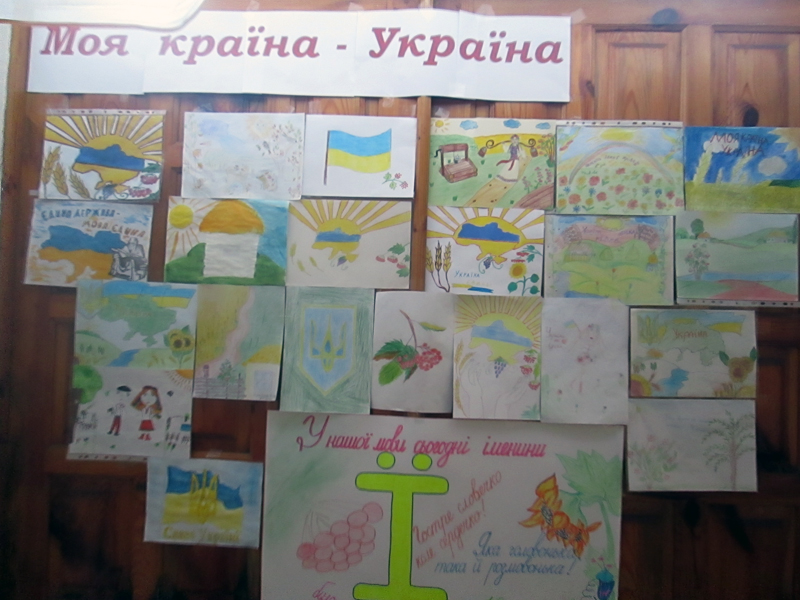 Впродовж дня учні початкових класів оформили виставку малюнків «Моя країна – Україна», плакатів «У нашої мови сьогодні іменини».
