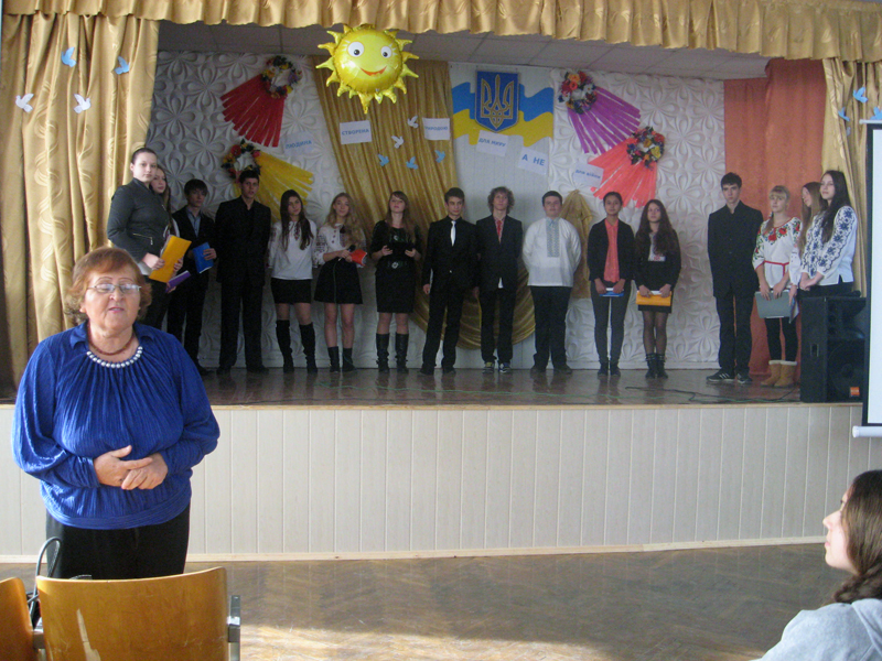 З тривогою говорили діти про події на сході України. В ході презентації міні-проекту учні підкреслювали думку про те, що збройні конфлікти влучають по самим основам сталого розвитку, крадучи у людей можливість розвиватися, створювати робочі місця, захищати оточуюче середовище, боротися з бідністю.