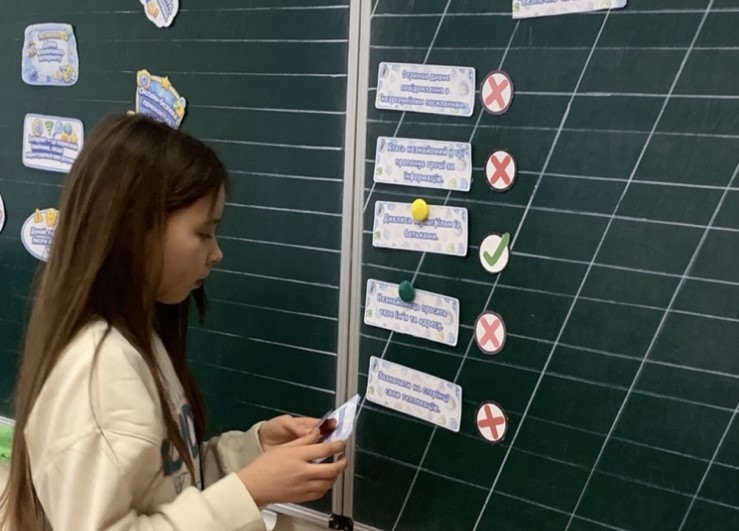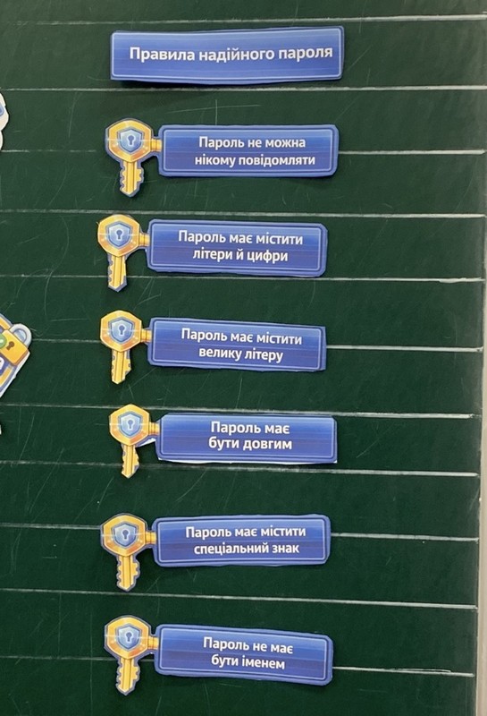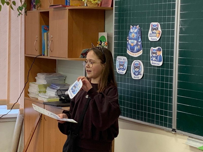 А для учнів 2-А класу шестикласники підготували та провели окремий урок про безпеку в інтернеті. Діти зіграли у гру « Безпечно чи небезпечно», допомогли скласти Кібер-котику рюкзачок безпечного інтернету, познайомилися з правилами створення надійного паролю та правилами користування інтернетом. Попрактикувалися створювати власні паролі та нікнейми. Отримали у подарунок правила безпеки в інтернеті.