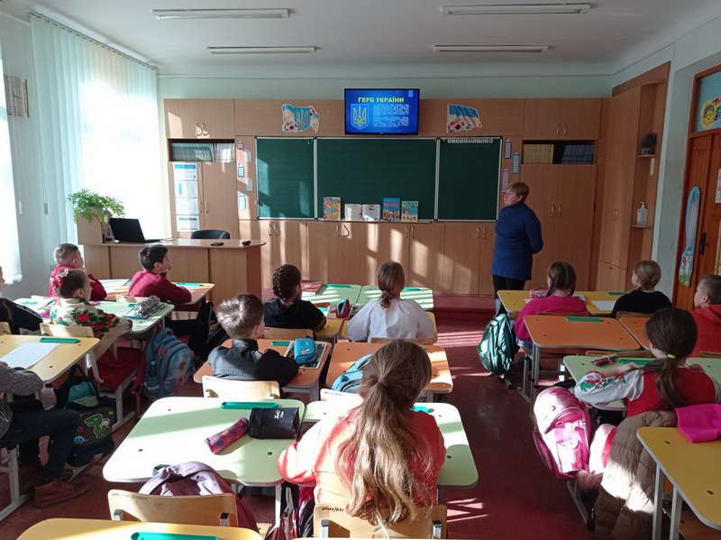 З метою виховання любові і пошани до державної символіки у Рівненському ліцеї № 22 бібліотекарями закладу було проведено бібліотечну годину «Історія виникнення українського герба». Шанобливе ставлення до державних символів, виховання патріотичних почуттів є крихітною, але дуже важливою сходинкою в закладенні духовних основ державності. Учні 4-Г класу переглянули відеоролик «Державний герб України», в якому розповідається про давню та величну історію нашої святині та її сучасність, подивились навчально-пізнавальну презентацію «Моя Батьківщина» про державні та народні символи України.
