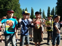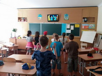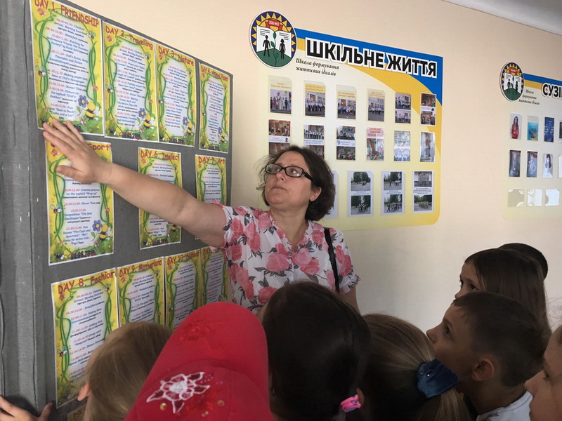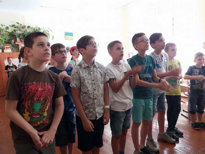 Then our kids made up unit’s title, rules, sang a unit’s song “It’s A Small World After All” and got to know about their daily routine. Тоді діти вигадали назву загону, правила, співали загонову пісню і дізнались про розпорядок дня.