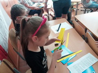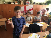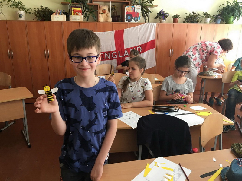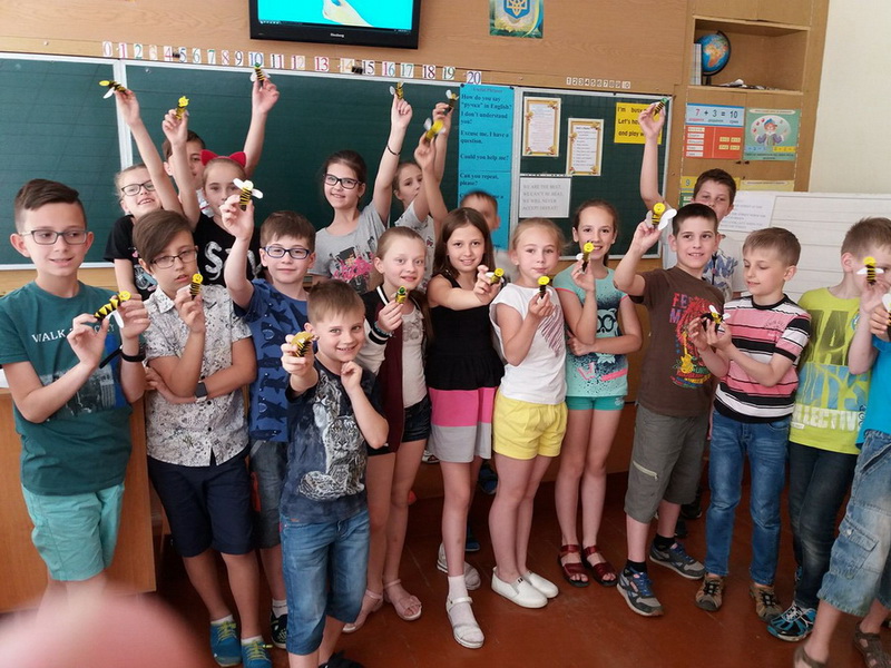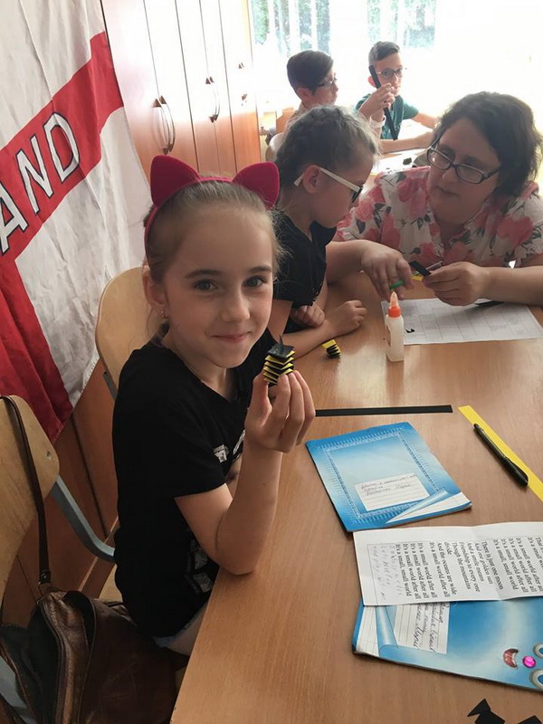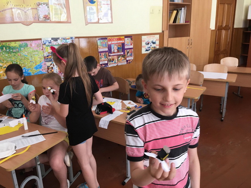 After that pupils made small paper bees which were their unit’s emblem. Учні виготовили маленькі бджілки, які пізніше стали емблемою загону.