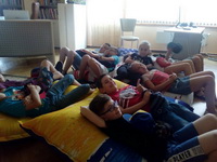 Сьогодні діти мовного загону відвідали Рівненську обласну універсальну наукову бібліотеку, де мали цікаву екскурсію до музею бібліотеки та взяли участь в інтелектуальних та розважальних забавах. Пізніше погодували птахів біля озера з лебедями та пограли в ігри.