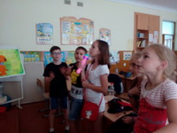 Music is everywhere. Kids like singing very much. Especially pupils enjoy karaoke. Today we were singing many popular English songs and we had a contest “The best Singer”. It was fun.