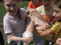 День 5 у «Вулику» розпочався незвичайною для наших вихованців розвагою. Вчитель англійської мови Назар Степанов ознайомив усіх з правилами поведінки у надзвичайних ситуаціях та показав найпростіші методи надання першої домедичної допомоги. А потім діти змогли застосувати набуті знання у грі-квесті «Авіакатастрофа».